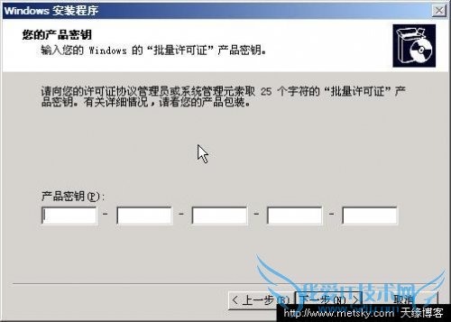 8、根据提示输入Windows XP安装密钥,然后点击下一步: