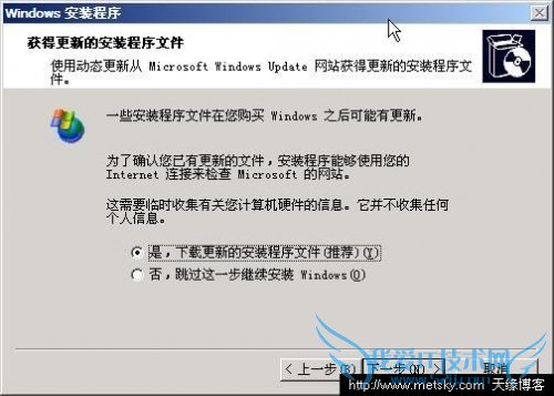 12、这是选择是否获取更新,选择“否”,跳过这一步继续安装,点击下一步。