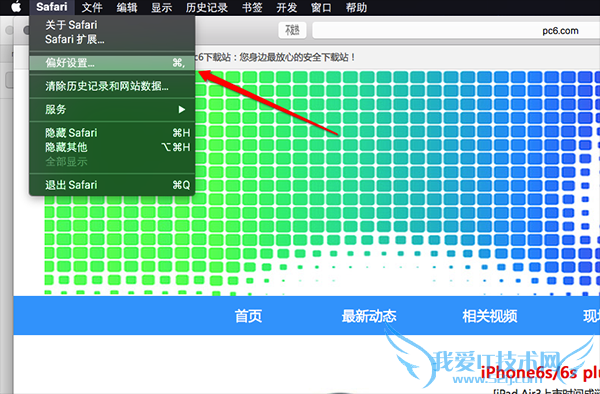 1.首先要打开 Safari,然后点击屏幕左上角的 Safari 菜单,并选择偏好设置。