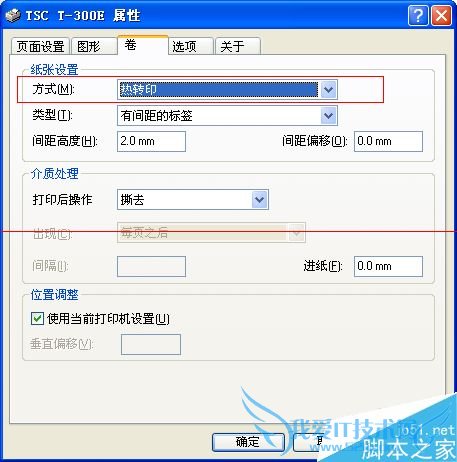 5、在卷的选项中把方式改为热转印,然后确定打印。