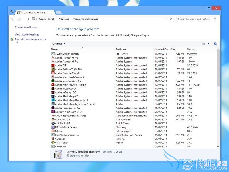 现在,你的可用空间最大化,下一步是要清除你不需要的任何程序。 要做到这一点,去到控制面板,打开“程序和功能”窗口,看到一个已安装软件列表。 “大小”列显示每个应用程序占用了整个磁盘 - 的东西,往往分散在多个磁盘位置程序文件的总大小。可以很容易地看到,如果一个应用程序占用过多的空间,并决定是否卸载它 - 或者,如果它是一个模块化安装,只需移除一些组件。 Microsoft Office和Adobe Creative Suite的完整安装包可以占用几个GB的空间,但可以削减要求,如果你减少你的安装您需要的组件。当然,在理想的情况下,你应该删除所有不必要的应用程序,但或大或小。即使节省的空间是最小的,去除多余软件,也能使得它让您免受很多安全漏洞。
