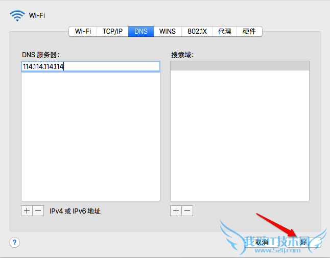 5、这里建议大家使用 114.114.114.114 或 8.8.8.8 这二个DNS 地址,设置好以后点击“好”按钮。