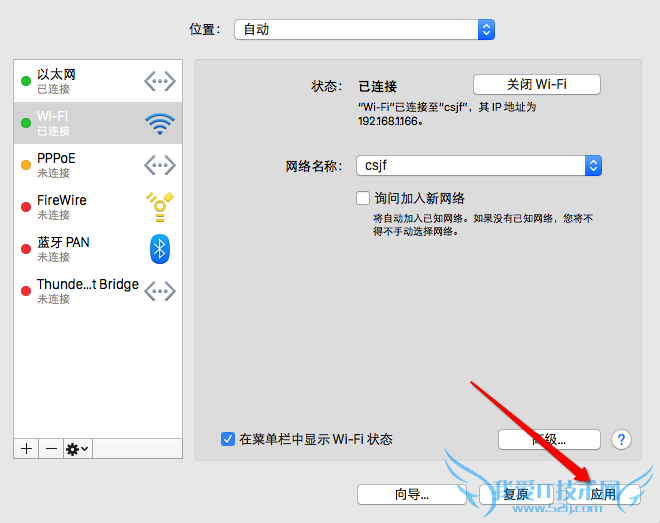 6、最后返回网络设置窗口时,再点击“应用”按钮,对我们之前所更改的 DNS 设置进行保存。