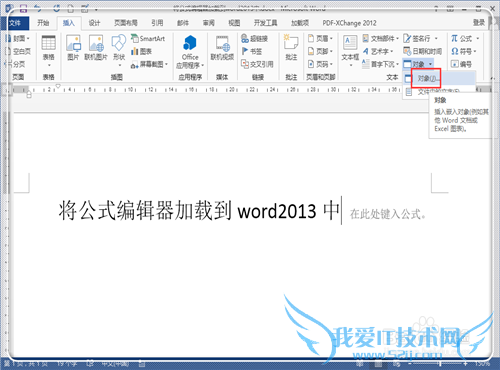 欢迎您访问我爱IT技术网,今天小编为你分享的电脑教程是日常使用电脑方面的电脑常识:office2013公式编辑器在哪儿?如何找到?,学会并运用这些电脑常识,让你快速玩转电脑及互联网方面的知识,下面是详细的分享!