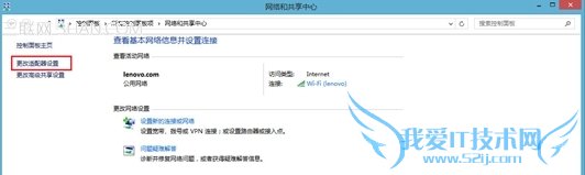然后左键点击“打开网络和共享中心”,打开后如下图所示: