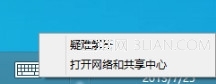 找到“打开网络和共享中心”(鼠标右击桌面右下角无线网络连接图标,出现了“打开网络和共享中心”),如下图: