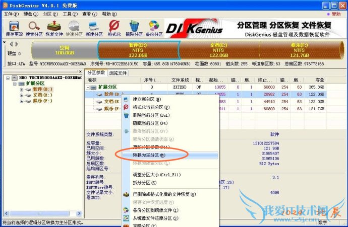 然后鼠标放到D盘上,选择 转换为主分区(M)选项,