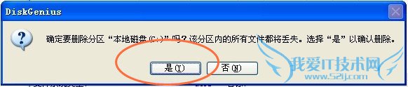 如图橙色箭头所指,鼠标移动到C盘,右击,出来删除当前分区(del),点确定!