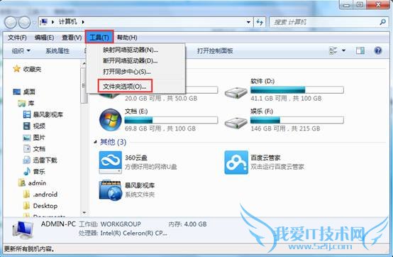 一、打开计算机,接着点击“工具→文件夹选项”。如下图所示: