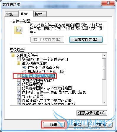 二、然后点击查看选项卡,去掉“使用复选框以选择项”前面的勾选。如下图所示: