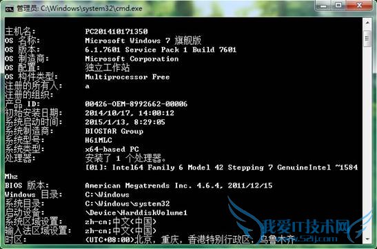 欢迎您访问我爱IT技术网,今天小编为你分享的电脑教程是日常使用电脑方面的电脑常识:运用dos命令观察电脑配置信息,学会并运用这些电脑常识,让你快速玩转电脑及互联网方面的知识,下面是详细的分享!