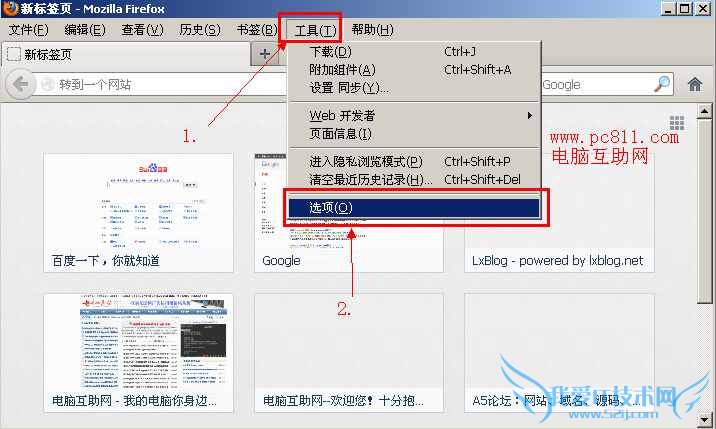 第1步:正常打开火狐浏览器,并单击菜单“工具”下的选项。