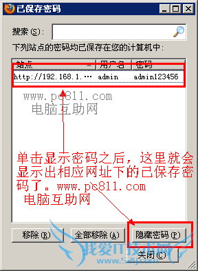 在前火狐浏览器查看及清除网站已记住的密码,作者曾经写过类似的文章,大家可看下:http://www.pc811.com/1/25670.html#PC2