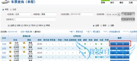 5、在搜索结果中,找到需要购买的车次,点击“购买”