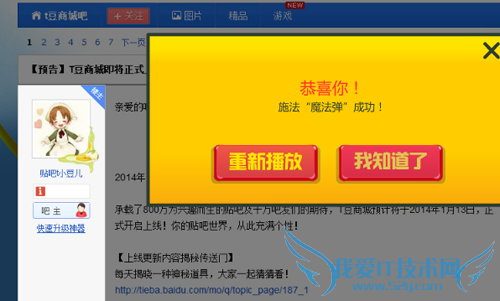 欢迎您访问我爱IT技术网,今天小编为你分享的电脑教程是日常使用电脑方面的电脑常识:百度贴吧魔法道具玩法教程,学会并运用这些电脑常识,让你快速玩转电脑及互联网方面的知识,下面是详细的分享!