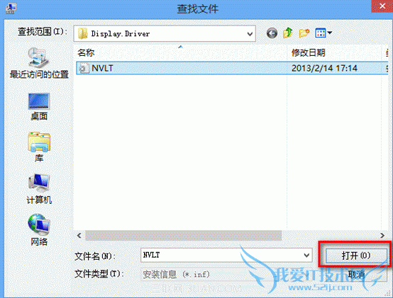 6. 选择显卡的inf文件,点击打开(如何找到N卡的inf文件,请参考本文最后的备注);