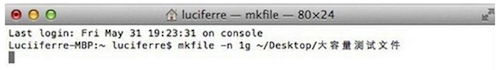 mkfile -n 1g ~/Desktop/大容量测试文件