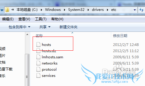 此目录下应该有6个文件,都是没有扩展名的,我们找到“hosts”这个文件,记请,不要打开“hosts.dz”这个文件,不是一回事哦!