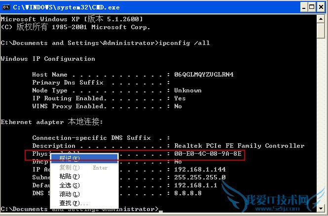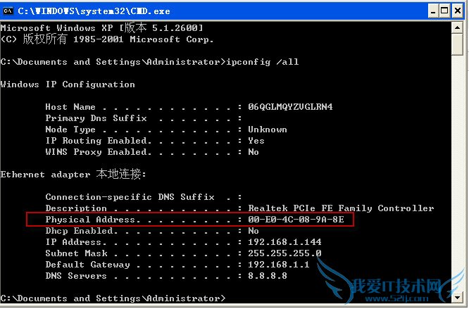 欢迎您访问我爱IT技术网,今天小编为你分享的电脑教程是日常使用电脑方面的电脑常识:XP系统如何查询MAC地址?,学会并运用这些电脑常识,让你快速玩转电脑及互联网方面的知识,下面是详细的分享!