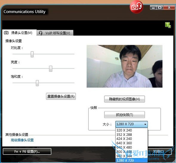 其次,您可以同时按热键Fn+F6,然后会出现一个视频的详细对话框,如果你要拍照的话,可以直接点击“抓拍快照”按钮,直接可以拍照保存到你的电脑上。