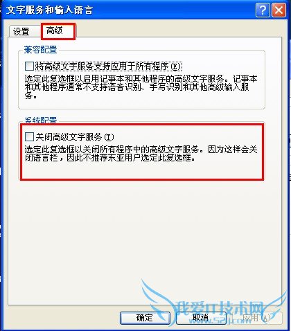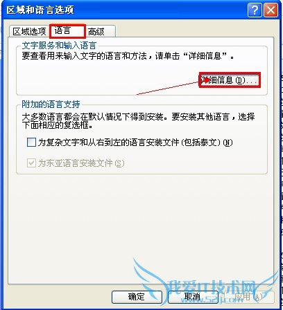 4.如果是ctfmon.exe损坏,可以复制或是下载一个,黏贴到c:windowssystem32下,然后到控制面板下的区域和语言选项下打开语言详细信息高级,把关闭高级文字服务前的勾去掉即可。