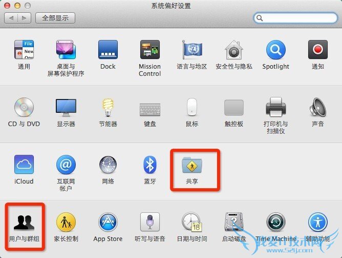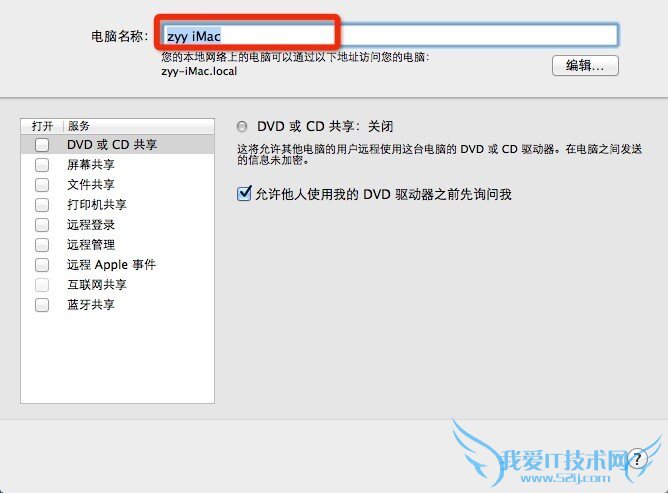 打开 "系统偏好设置" -> “共享”,如下图(先不管用户和群组):