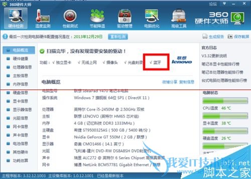 方法2:使用第三方软件更新蓝牙驱动,如驱动人生,鲁大师。