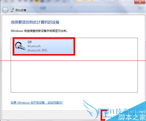 4、此时可以看到电脑蓝牙已经搜索到了Q9摩多蓝牙耳机,选中Q9点击进入下一步。