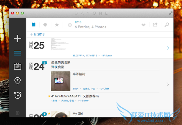 欢迎您访问我爱IT技术网,今天小编为你分享的电脑教程是日常使用电脑方面的电脑常识:Day One for mac使用测评,学会并运用这些电脑常识,让你快速玩转电脑及互联网方面的知识,下面是详细的分享!