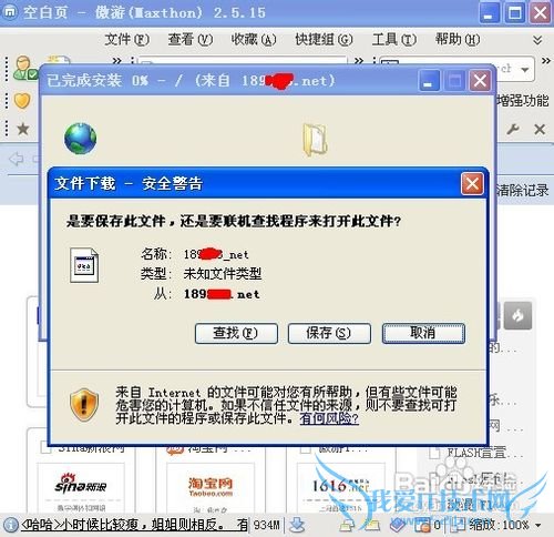 手机能正常访问而电脑上却不能正常访问的网站,往往有很多情况,最常见的一类是下图1所示的例子,在浏览器地址栏输入网址按回车后,不是进入网站,却是马上弹出下载未知文件的提示,有的人被吓蒙了,以为网站有毒有马,马上关闭下载提示框和页面,而有的人则淡定地把下载提示里的“查找”、“保存”和“取消”都试一遍,结果都是无法进入该网站页面。