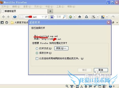 接着,我们用火狐firefox进行尝试,结果图下图5所示,通过火狐的下载文件信息提示“text/vnd.wap.xml”来看,这是手机网页专用格式,如果懂得wap网站设计的网友,就知道该网站是基于wap标准设计的,专门只针对手机上网,没有考虑兼容PC浏览器的。至此,火狐虽然没有解决我们的问题,但让我们确定了问题的所在。