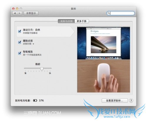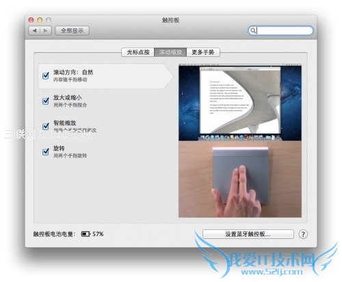 去掉滚动方向:自然前面的钩即可。 Magic Trackpad的设置界面与上图基本相同,只是示例改了而已,如下图: