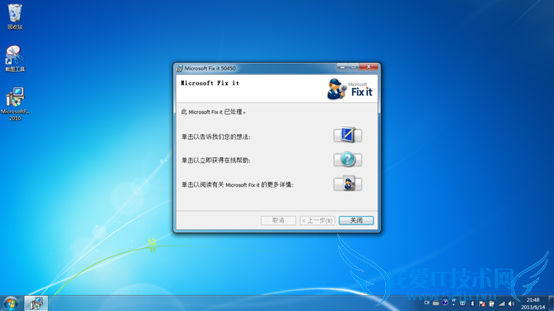 Microsoft fix it卸载完Office2010后 和2003、2007不一样 会有一个卸载完毕的提示。