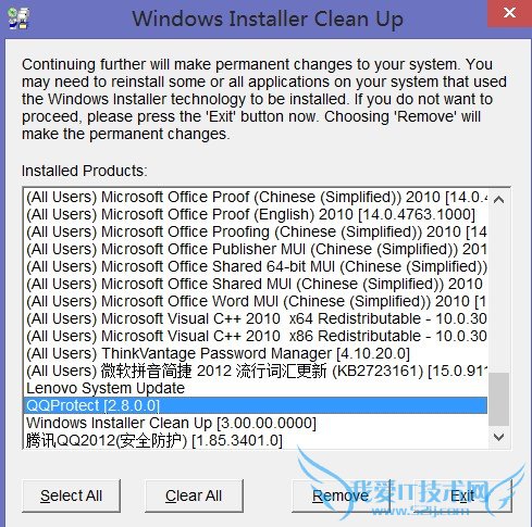 8. 下载安装微软提供的Windows Installer CleanUp Utility 1.0,它的主要功能是清除程序的Windows Installer配置信息。启动该工具后,选中卡巴斯基,然后点击“Remove”按钮即可。