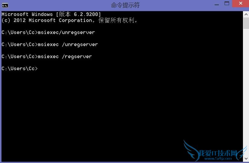 第二步:重新启动电脑进入安全模式(启动时按F8键),然后点击”开始-->运行“,输入”CMD“命令,在弹出的”CMD命令提示符“窗口中输入”msiexec /regserver“,最后重新启动系统即可。