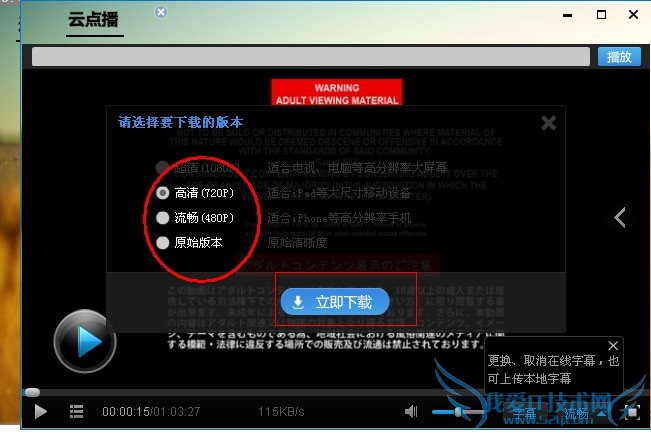 已经转码过了,所以你可以选择原版或者是转码的高清或者小格式