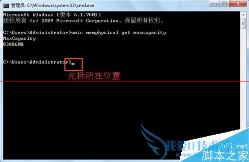 4、在光标处输入wmic memphysical get maxcapacity命令,每个单词中间加一个空格。