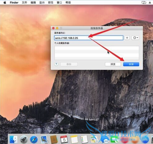 4、输入要共享的地址,格式为"smb://192.168.0.1" 其中的ip地址为你要访问的电脑ip。