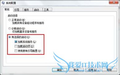 3、在“常规”选项卡上,单击“有选择的启动”,在“有选择的启动”下,单击以清除“加载启动项”复选框。如下图: