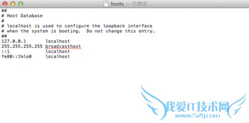 第四步、双击打开“Hosts”文件,内容如下,你会发现其实Mac OS系统的Hosts文件和Windows系统的Hosts文件其实一个样,按照你的需求修改就可以了。