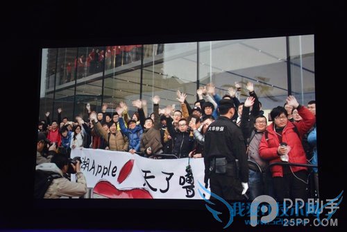 首先他跟大家介绍在中国选定地址的苹果零售店。并称杭州的苹果零售店的设计师,跟苹果总部的设计师是同一个人。上一季度超过120万用户访问苹果商店。Apple目前已在中国开设了21家 Apple Store零售店,而计划还将不断增长。