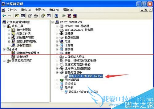2、双击设备管理器-打开图像处理设备-选中设备下面的usb 2.0(电脑系统不一样,相应也就不一样了,该图为个人电脑示例)