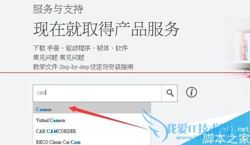 6、在搜索框中输入“Camera”然后点搜索,在符合的搜索结果中点击“Camera”,选择驱动程序与和工具软件→选择“摄像头”,点击该“摄像头”,就会出现很多摄像头驱动