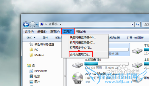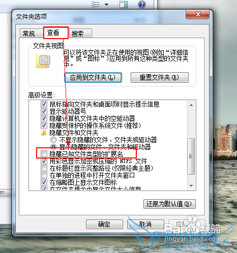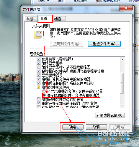 下一步,设置显示隐藏文件,别问为什么要执行这一步,待会就会真相大白。打开“资源管理器”,选择“工具”、“文件夹选项”,切换到“查看”选项卡,勾选“显示隐藏的文件、文件夹和驱动器”,如图操作。