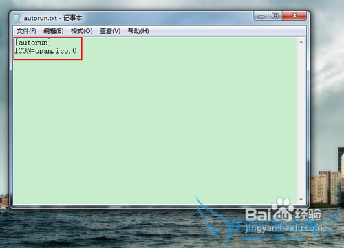 “upan.ico”必须与“autorun.inf”文件内输入的文件名一致。