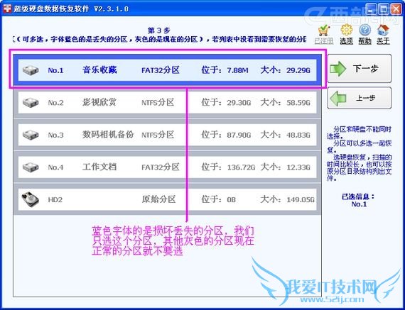 等待几分钟扫描分区,就可以列出了这个丢失的分区,以蓝色字体来加亮显示出来,很容易区分出,而其他灰色字体的分区是现在系统里面正常的分区,不是我们需要恢复的,就不要选它。选上蓝色的分区后,点下一步按钮。这个在系统里面打不开的分区,根目录很清晰的就显示在我们的恢复软件里面,数据是正常完好的,恢复后文件都对,可以正常使用。