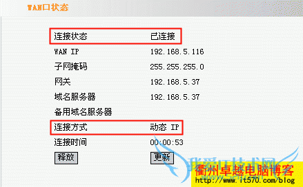 点击保存,然后查看运行状态 ---- WAN 口状态。