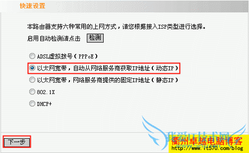 登陆路由器管理界面点击“快速设置”后出现如下界面:
