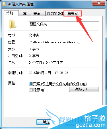 在弹出“新建文件夹 属性”窗口中,点击“自定义”按钮,如图所示