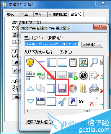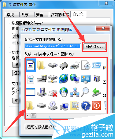 在弹出的新窗口中,可以选择电脑本身自带的图标(也可以点击“浏览”按钮,更换自己想要的ico图标),如图所示